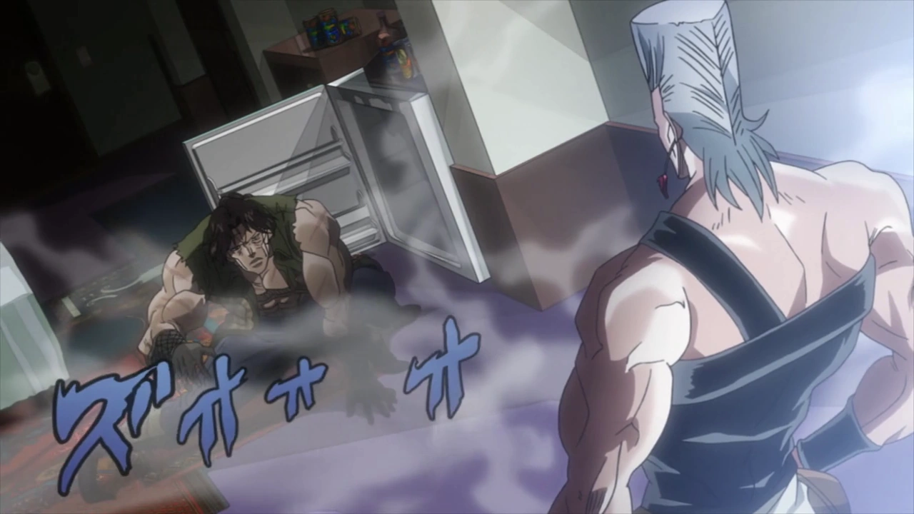 Polnareff fatigué et blessé par son combat arrive à la chambre de Joseph/Avdol, ses amis lui sortiront alors qu'il est en retard et Polnareff s'effondrera.