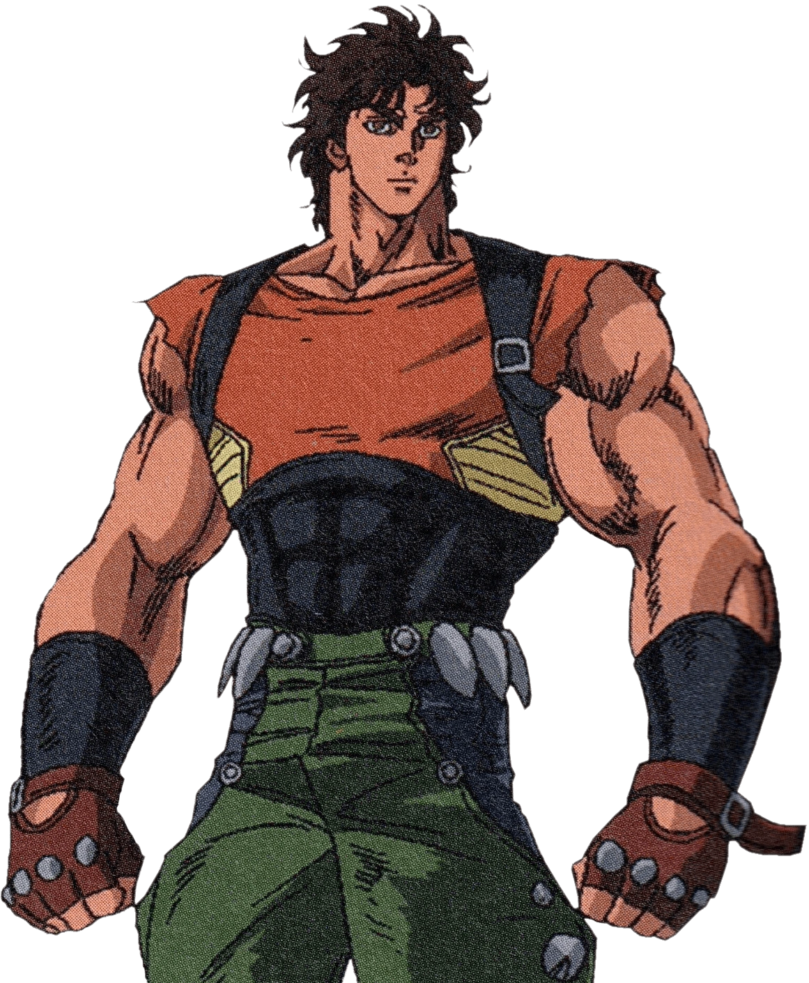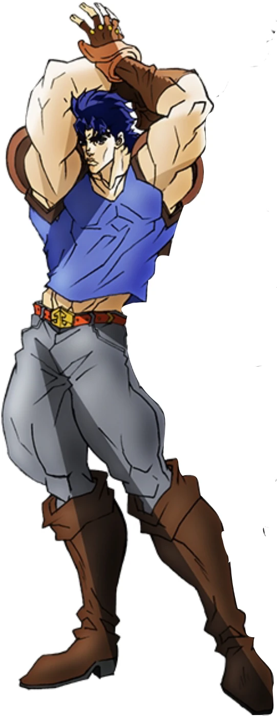 - Pendant son entraînement avec Zeppeli, il se déshabille jusqu'à un débardeur stylisé avec des bracelets, et à un moment donné, une couronne.