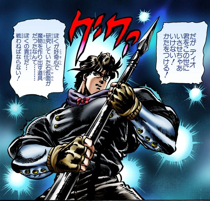 | “ | J'ai une raison suffisante pour perdre quatre doigts ! Protéger mon père ! Protéger la famille Joestar ! Mes motivations ne sont pas du même acabit que les vôtres ! | ” |