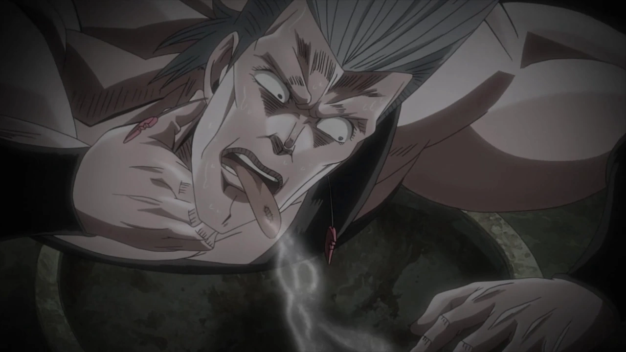 Polnareff devant le sur-nombre décide de fuir et se retrouve dans les wc de l'hôtel.
