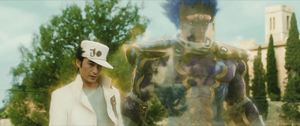 - Jotaro usa sua Parada do Tempo na casa de Josuke para salvá-lo do Colar Aqua.