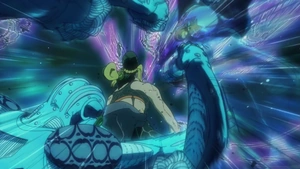 No entanto, conforme Jotaro se aproxima, é revelado que Jolyne sobreviveu e retoma sua luta. Jotaro chega graças a Ermes e para o tempo. Pucci é ferido e cercado, mas consegue liberar seu poder supremo antes do esperado. Enquanto ele flutua, ninguém pode impedi-lo de desbloquear seu último Stand, e uma luz brilhante envolve todos.