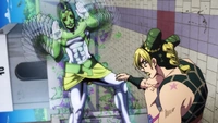 Uma luta começa, mas Enrico Pucci joga fora o disco de memória de Jotaro no agonizante Anasui, ameaçando destruí-lo. Jolyne não tem escolha a não ser abandonar a luta e Pucci pega o bebê e se funde com ele. FF se sacrifica para salvar Anasui. A fuga é um desastre quase completo.