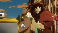 Joseph brigando com um motorista de táxi.