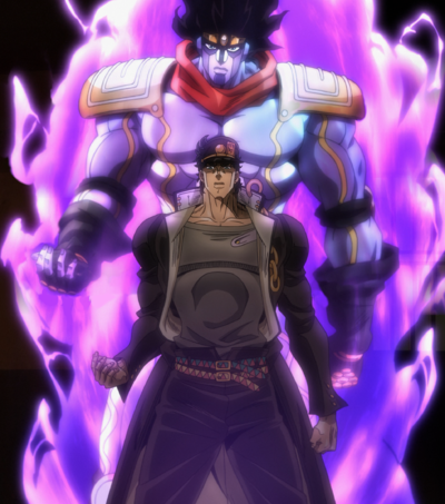 Na verdade, Jotaro Kujo, o que você chamou de “espírito maligno” é apenas uma visão poderosa criada pela sua própria energia vital! E já que está perto de você, ele é chamado... de Stand!