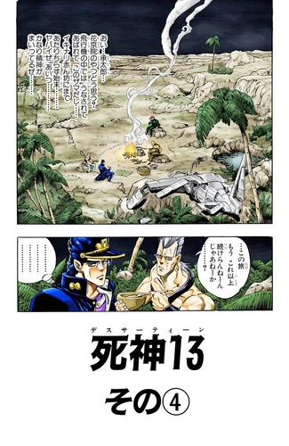 Death Thirteen, Parte 4 (死神デス13サーティーン その④ Desu Sātīn Sono 4), originalmente A Determinação de Kakyoin (花京院の確信 Kakyōin no Kakushin) no lançamento da WSJ, é o quinquagésimo oitavo capítulo de Stardust Crusaders e o centésimo septuagésimo primeiro capítulo do mangá de JoJo's Bizarre Adventure.