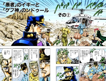 Os funcionários da Speedwagon deixam alguns suprimentos para o grupo antes de partirem. Joseph pergunta como sua filha está, e eles infelizmente respondem que sua condição está ficando pior. O grupo Joestar agora só tem duas semanas para derrotarem DIO antes de Holy morrer. Os funcionários da Speedwagon reportam que nove pessoas foram avistadas entrando e saindo da mansão em que DIO supostamente está se escondendo, e que pensaram que esses homens e mulheres misteriosos eram usuários de Stand. Depois disso o helicóptero parte e o grupo continua a jornada. Na distância, um homem cego tenta pegar uma mosca com sua mão. Depois de falhar, ele acerta uma pedra com sua bengala e mata a mosca.
