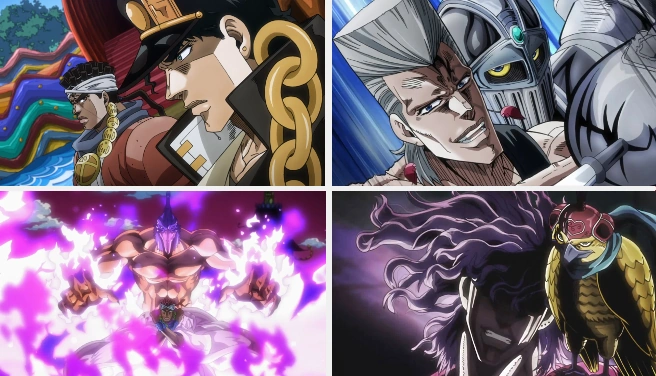 | Jean Pierre Polnareff | Jotaro Kujo | Muhammad Avdol | Noriaki Kakyoin | Joseph Joestar |