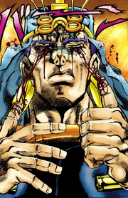 Enquanto os três partem para encontrar a Pedra Vermelha de Aja, Wamuu fere Mark mortalmente ao passar pelo soldado alemão. Caesar Anthonio Zeppeli foi forçado a tirar seu amigo moribundo de sua miséria antes de tentar vingá-lo, apenas para Wamuu dominá-lo. Quando Wamuu sai, ele é confrontado por Joseph Joestar, que revela sua arma preferida: clackers de metal com infusão de ondulações. Divertido com o estilo de luta do jovem, ele range o pulso de Joseph para lhe dar um minuto de seu tempo antes que ele morra devido à perda de sangue. Embora pego de surpresa pelo método de luta pouco ortodoxo de Joseph, Wamuu se permite ser atingido por punição e então acaba com Joseph com sua Tempestade de Areia Divina.